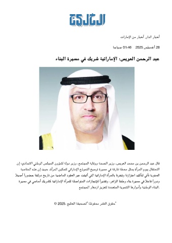 ةﺮﻴﺴﻣ ﻓ ﺳﺎﺳأ ﻚﻳﺮﺸﻛ ﺔﻴﺗارﺎﻣﻹا ةأﺮﻤﻠﻟ ﺔﻠﺻاﻮﺘﻤﻟا تازﺎﺠﻧﻺﻟ ًاﺮﻳﺪﻘﺗو ،ﺮﻫاﺰﻟا ﺎﻨﻨﻃو ءﺎﻨﺑ ةﺮﻴﺴﻣ ﻓ ﻼﻋﺎﻓ ًارودو