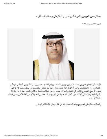 8/28/25, 9:31 AM                          ﮫﻠﺑﻘﺗﺳﻣ ﺔﻋﺎﻧﺻو نطوﻟا ءﺎﻧﺑ ﻲﻓ كﯾرﺷ ةأرﻣﻟا :سﯾوﻌﻟا نﻣﺣرﻟادﺑﻋ | ﺔﯾﺗارﺎﻣﻹا دﺎﺣﺗﻻا ﺔﻔﯾﺣﺻ