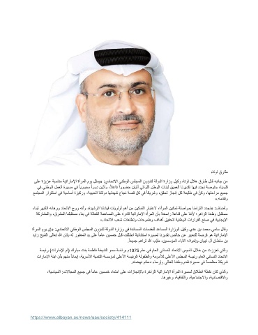 ىلع ةزيزع ةبسانم ةيتاراملإا ةأرملا موي لثمي« :يداحتلاا ينطولا سلجملا نوؤشل ةلودلا ةرازو ليكو هاتول للاه قراط لاق هبناج نم