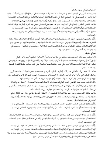 ﺔﻴﺗارﺎﻣﻹا ةأﺮﻤﻟا مﻮﻴﺑ تارﺎﻣﻹا ﺔﻟود ﻔﺘﺤﺗ» :تاردﺎﺼﻟا نﺎﻤﺘﺋﻻ دﺎﺤﺗﻻا ﺔﻛﺮﺸﻟ يﺬﻴﻔﻨﺘﻟا ﺲﻴﺋﺮﻟا ،ﻋورﺰﻤﻟا ءﺎﺟر لﻮﻘﺗو
