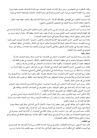 ﻦﻣ ةأﺮﻤﻟا ﻪﺘﻘﻘﺣ ﺎﻤﺑ ﻔﺘﺤﻧ ،ﺔﻴﺗارﺎﻣﻹا مﻮﻳ ﻓ» :ﺔﻗرﺎﺸﻟا ﻓ ﺔﻤﺤﻟا ﺖﻴﺒﻟ ﺔﻳﺬﻴﻔﻨﺘﻟا ةﺮﻳﺪﻤﻟا ،ﺑوﺮﻘﻌﻟا ةوﺮﻣ ﺖﻟﺎﻗو