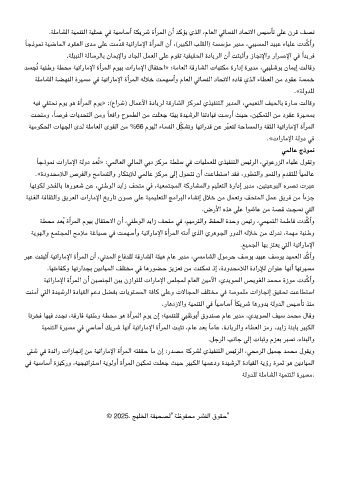 ﺮﺒﻋ ﺖﺘﺒﺛأ ﺔﻴﺗارﺎﻣﻹا ةأﺮﻤﻟا نأ ،ﻧﺪﻤﻟا عﺎﻓﺪﻠﻟ ﺔﻗرﺎﺸﻟا ﺔﺌﻴﻫ مﺎﻋ ﺮﻳﺪﻣ ،ﺴﻣﺎﺸﻟا لﻮﻣﺮﺣ ﻒﺳﻮﻳ ﺪﻴﺒﻋ ﻒﺳﻮﻳ ﺪﻴﻤﻌﻟا ﺪﻛأو