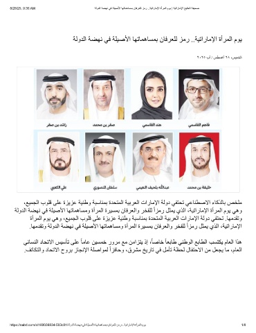8/28/25, 9:36 AM ﺔﻟودﻟا ﺔﺿﮭﻧ ﻲﻓ ﺔﻠﯾﺻﻷا ﺎﮭﺗﺎﻣھﺎﺳﻣﺑ نﺎﻓرﻌﻠﻟ زﻣر ..ﺔﯾﺗارﺎﻣﻹا ةأرﻣﻟا موﯾ | ﺔﯾﺗارﺎﻣﻹا ﺞﯾﻠﺧﻟا ﺔﻔﯾﺣﺻ