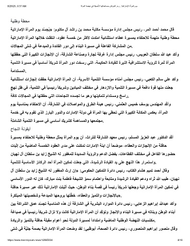 ﺔﻠﻓﺎﺣ ةرﯾﺳﻣ رﺑﻋ كﻟذ ﺔﯾﺗارﺎﻣﻹا تﺗﺑﺛأ ثﯾﺣ ،نطوﻟا ءﺎﻧﺑ ﺔﺻﻗ ﻲﻓ ًﺎﺳﯾﺋر ًﺎﻛﯾرﺷ ﺎﮭﻠﻌﺟو ﺔﯾﺗارﺎﻣﻹا ةأرﻣﻟا نﯾﻛﻣﺗ ﻲﻓ