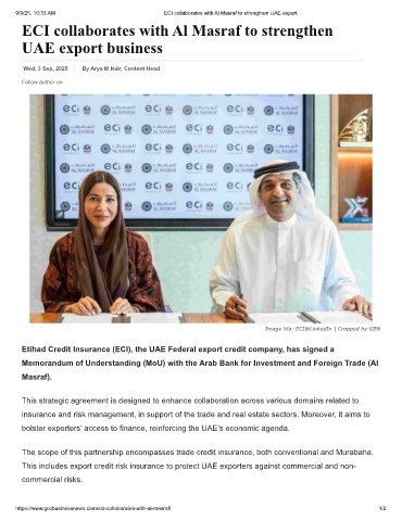 9/9/25, 10:33 AM                             ECI collaborates with Al Masraf to strengthen UAE export