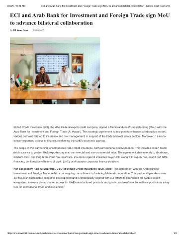9/9/25, 10:34 AM      ECI and Arab Bank for Investment and Foreign Trade sign MoU to advance bilateral collaboration - Middle East News 247