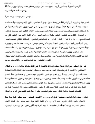 ةدﺎﯾرﻟ تارﺎﻣﻹا سﻠﺟﻣﻟ ًﺎﺳﯾﺋر ،ﺔﺣﺎﯾﺳﻟاو دﺎﺻﺗﻗﻻا رﯾزو - يرﻣﻟا قوط نﺑ ﷲدﺑﻋ نﯾﯾﻌﺗ ءارزوﻟا سﻠﺟﻣ ررﻗ ﺎﻣﻛ