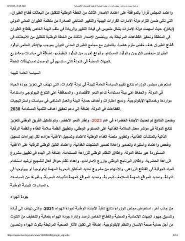 ةﺎﯾﺣﻟا ةدوﺟ زﯾزﻌﺗ ﻰﻟإ فدﮭﺗ ﻲﺗﻟا ،تارﺎﻣﻹا ﺔﻟود ﻲﻓ ﺔﺋﯾﺑﻠﻟ ﺔﻣﺎﻌﻟا ﺔﺳﺎﯾﺳﻟا مﯾﯾﻘﺗ ﺞﺋﺎﺗﻧ ءارزوﻟا سﻠﺟﻣ ضرﻌﺗﺳا
