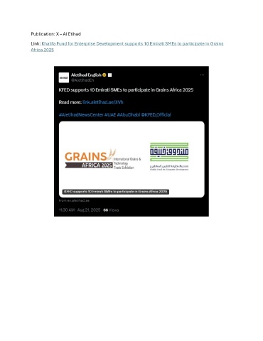 Publication: X – Al Etihad Link: Khalifa Fund for Enterprise Development supports 10 Emirati SMEs to participate in Grains Africa 2025