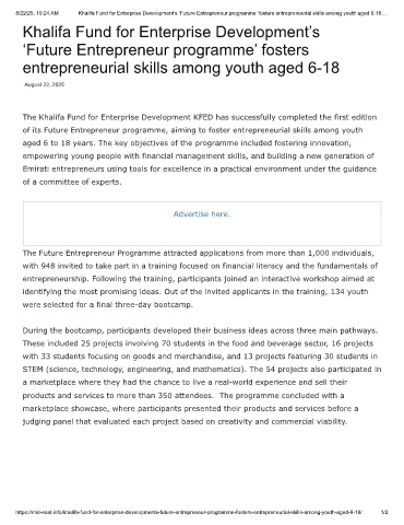 8/22/25, 10:24 AM Khalifa Fund for Enterprise Development’s ‘Future Entrepreneur programme’ fosters entrepreneurial skills among youth aged 6-18…