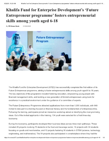 8/22/25, 10:25 AM Khalifa Fund for Enterprise Development’s ‘Future Entrepreneur programme’ fosters entrepreneurial skills among youth aged 6-18…