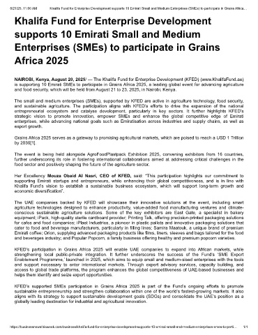 8/21/25, 11:06 AM Khalifa Fund for Enterprise Development supports 10 Emirati Small and Medium Enterprises (SMEs) to participate in Grains Africa…