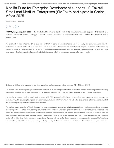 8/21/25, 11:06 AM Khalifa Fund for Enterprise Development supports 10 Emirati Small and Medium Enterprises (SMEs) to participate in Grains Africa…