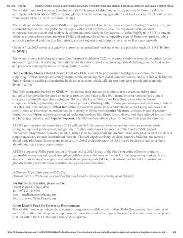 8/21/25, 11:07 AM Khalifa Fund for Enterprise Development supports 10 Emirati Small and Medium Enterprises (SMEs) to participate in Grains Africa…