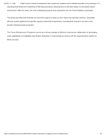 8/21/25, 11:17 AM Khalifa Fund for Enterprise Development’s Future Entrepreneur programme fosters entrepreneurial skills among youth aged 6-18 -…