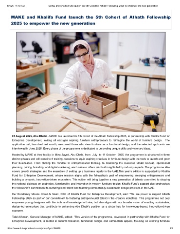 8/4/25, 11:49 AM MAKE and Khalifa Fund launch the 5th Cohort of Athath Fellowship 2025 to empower the new generation