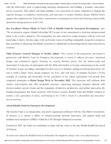 8/4/25, 11:51 AM MAKE and Khalifa Fund launch the 5th Cohort of Athath Fellowship 2025 to empower the new generation – Executive Bulletin