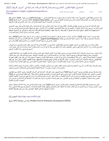 8/21/25, 11:34 AM APO Group - Africa Newsroom / 2025 ﺎﯾﻘﯾرﻓأ زﻧﯾرﻏ" ﻲﻓ ﺔﯾﺗارﺎﻣإ تﺎﻛرﺷ 10 ﺔﻛرﺎﺷﻣ مﻋدﯾ ﻊﯾرﺎﺷﻣﻟا رﯾوطﺗﻟ ﺔﻔﯾﻠﺧ قودﻧﺻ | ﻲﻔﺣﺻ نﺎﯾﺑ"