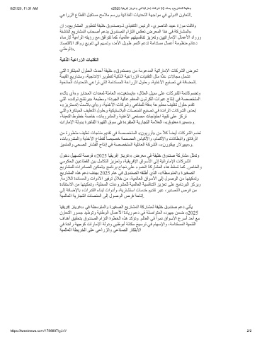 ﻲﻋارﺰﻟا عﺎﻄﻘﻟا ﻞﺒﻘﺘﺴﻣ ﺢﻣﻼﻣ ﻢﺳرو ﺔﯿﺋاﺬﻐﻟا تﺎﯾﺪﺤﺘﻟا ﺔﮭﺟاﻮﻣ ﻲﻓ ﻲﻟوﺪﻟا نوﺎﻌﺘﻟا.