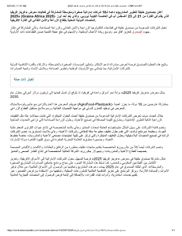 2025» (Grains Africa 2025)، زرﺑأ دﺣأ دﻌُﯾ يذﻟاو ،ﻲﺑورﯾﻧ ﺔﯾﻧﯾﻛﻟا ﺔﻣﺻﺎﻌﻟا ﻲﻓ بآ سطﺳﻏأ 23 ﻰﻟإ 21 نﻣ ةرﺗﻔﻟا ﻲﻓ مﺎﻘﯾ يذﻟا