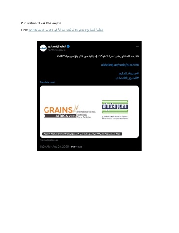 Publication: X – Al Khaleej Biz Link: »2025 ايقيرفإ زنيرغ« يف ةيتارامإ تاكرش 10 معدي »عيراشملل ةفيلخ«