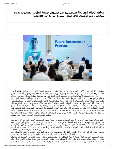 لﺎﻤﻋأ ﺪﺋار� ﺞﻣﺎﻧﺮﺑ ﻦﻣ ﻰﻟوﻷا ةروﺪﻟا ﻊﻳرﺎﺸﻤﻟا ﺮﻳﻮﻄﺘﻟ ﺔﻔﯿﻠﺧ قوﺪﻨﺻ ﻢﺘﺘﺧا :2025 ﺲﻄﺴﻏأ 21 ،ﻲﺒظﻮﺑأ