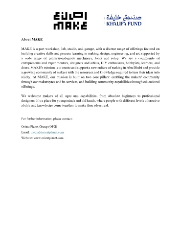 doers. MAKE's mission is to create and support a new culture of making in Abu Dhabi and provide