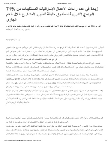 رﯾوطﺗﻟ ﺔﻔﯾﻠﺧ قودﻧﺻ نﻣ ً ﺎﺑﯾردﺗ نﯾﻘﻠﺗ ﻲﺗﻼﻟا تﺎﯾﺗارﺎﻣﻹا لﺎﻣﻋﻷا تادﺋار ددﻋ ﻊﻔﺗرا- 2025 سطﺳﻏأ 28 ،ةدﺣﺗﻣﻟا ﺔﯾﺑرﻌﻟا تارﺎﻣﻹا ،ﻲﺑظوﺑأ