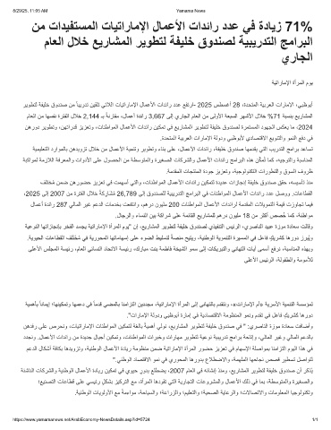 رﯾوطﺗﻟ ﺔﻔﯾﻠﺧ قودﻧﺻ نﻣ ً ﺎﺑﯾردﺗ نﯾﻘﻠﺗ ﻲﺗﻼﻟا تﺎﯾﺗارﺎﻣﻹا لﺎﻣﻋﻷا تادﺋار ددﻋ ﻊﻔﺗرا- 2025 سطﺳﻏأ 28 ،ةدﺣﺗﻣﻟا ﺔﯾﺑرﻌﻟا تارﺎﻣﻹا ،ﻲﺑظوﺑأ