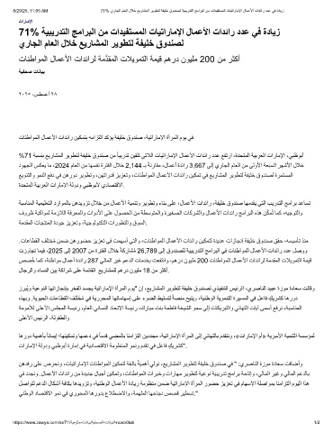 %71 ﺔﺑﺳﻧﺑ ﻊﯾرﺎﺷﻣﻟا رﯾوطﺗﻟ ﺔﻔﯾﻠﺧ قودﻧﺻ نﻣ ً ﺎﺑﯾردﺗ نﯾﻘﻠﺗ ﻲﺗﻼﻟا تﺎﯾﺗارﺎﻣﻹا لﺎﻣﻋﻷا تادﺋار ددﻋ ﻊﻔﺗرا -ةدﺣﺗﻣﻟا ﺔﯾﺑرﻌﻟا تارﺎﻣﻹا ،ﻲﺑظوﺑأ