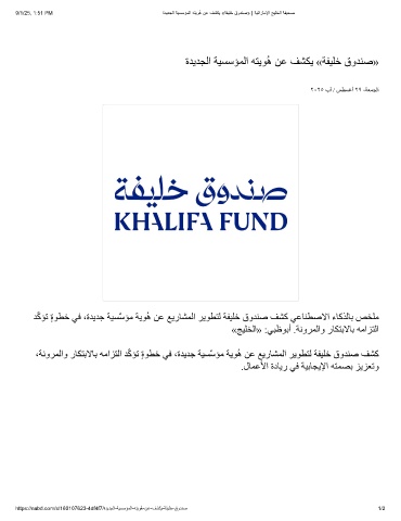 9/1/25, 1:51 PM ةدﯾدﺟﻟا ﺔﯾﺳﺳؤﻣﻟا ﮫﺗﯾوُھ نﻋ فﺷﻛﯾ «ﺔﻔﯾﻠﺧ قودﻧﺻ» | ﺔﯾﺗارﺎﻣﻹا ﺞﯾﻠﺧﻟا ﺔﻔﯾﺣﺻ