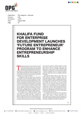 Publication: The Integrator - Financial Country: UAE Circulation: 6,500 Date: August 2025 Page: 41