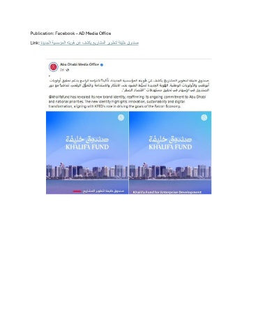 Publication: Facebook – AD Media Office Link: ةديدجلا ةيسسؤملا هتيوُه نع فشكي عيراشملا ريوطتل ةفيلخ قودنص