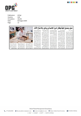 Publication: Al Fajr Country: UAE Circulation: 34,596 Date: 02 August 2025 Page: 13