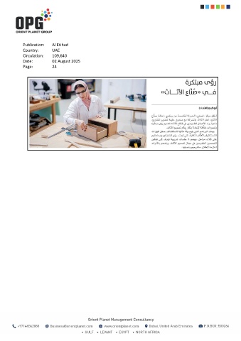 Publication: Al Etihad Country: UAE Circulation: 109,640 Date: 02 August 2025 Page: 24