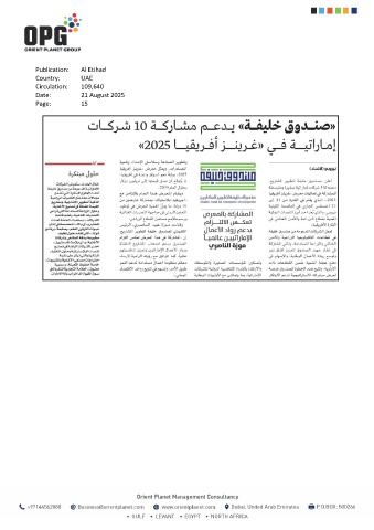 Publication: Al Etihad Country: UAE Circulation: 109,640 Date: 21 August 2025 Page: 15