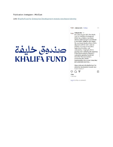 Publication: Instagram – Mid East Link: Khalifa Fund for Enterprise Development reveals new brand identity