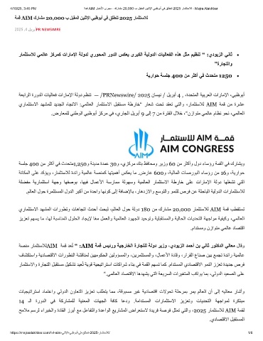 4/10/25, 3:45 PM ﺔﻣﻗ AIM رﺎﺑﺧﻷا ىرﺟﻣ - كرﺎﺷﻣ 20,000 ب لﺑﻘﻣﻟا نﯾﻧﺛﻹا ﻲﺑظوﺑأ ﻲﻓ ﻖﻠطﻧﺗ 2025 رﺎﻣﺛﺗﺳﻼﻟ - Majra Alakhbar