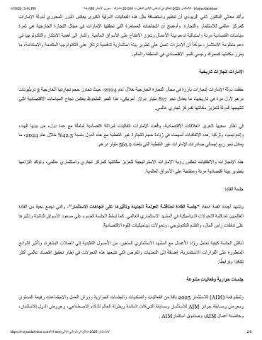 ﺎﮭﻣاﺰﺘﻟا ﺪﻛﺆﺗو ،ﻲﻤﻟﺎﻋ يرﺎﻤﺜﺘﺳاو يرﺎﺠﺗ ﺰﻛﺮﻤﻛ ﺎﮭﺘﻧﺎﻜﻣ ﺰﯾﺰﻌﺘﻟ ﺔﯿﺠﯿﺗاﺮﺘﺳﻻا تارﺎﻣﻹا ﺔﯾؤر ﺲﻜﻌﺗ تﺎﯿﻗﺎﻔﺗﻻاو تازﺎﺠﻧﻹا هﺬھ