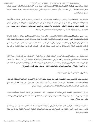ﺮﺷﺎﺒﻤﻟا ﻲﺒﻨﺟﻷا رﺎﻤﺜﺘﺳﻻاو ﺔﯿﺳﺎﻣﻮﻠﺑﺪﻟا ﻦﻓ ” ناﻮﻨﻋ ﻞﻤﺤﺗو ةدﺎﻘﻟا ﺔﺴﻠﺠﺑ ، (FDI)ﺮﺷﺎﺒﻤﻟا ﻲﺒﻨﺟﻷا رﺎﻤﺜﺘﺳﻻا رﻮﺤﻣ تﺎﺴﻠﺟ ﻖﻠﻄﻨﺗو