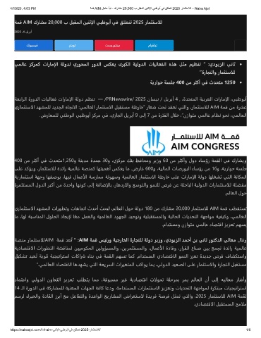 4/10/25, 4:03 PM ﺔﻣﻗ AIM لﺟﺎﻋ ﺄﺑﻧ - كرﺎﺷﻣ 20,000 ب لﺑﻘﻣﻟا نﯾﻧﺛﻹا ﻲﺑظوﺑأ ﻲﻓ ﻖﻠطﻧﺗ 2025 رﺎﻣﺛﺗﺳﻼﻟ – Naba Ajel