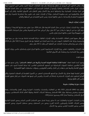 ﺎﻬﻣاﺰﺘﻟا ﺪﻛﺆﺗو ،ﻲﻤﻟﺎﻋ يرﺎﻤﺜﺘﺳاو يرﺎﺠﺗ ﺰﻛﺮﻤﻛ ﺎﻬﺘﻧﺎﻜﻣ ﺰﻳﺰﻌﺘﻟ ﺔﻴﺠﻴﺗاﺮﺘﺳالا تارﺎﻣإلا ﺔﻳؤر ﺲﻜﻌﺗ تﺎﻴﻗﺎﻔﺗالاو تازﺎﺠﻧإلا هﺬﻫ