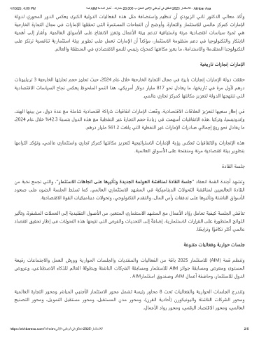 ﺎﻬﻣاﺰﺘﻟا ﺪﻛﺆﺗو ،ﻲﻤﻟﺎﻋ يرﺎﻤﺜﺘﺳاو يرﺎﺠﺗ ﺰﻛﺮﻤﻛ ﺎﻬﺘﻧﺎﻜﻣ ﺰﻳﺰﻌﺘﻟ ﺔﻴﺠﻴﺗاﺮﺘﺳالا تارﺎﻣإلا ﺔﻳؤر ﺲﻜﻌﺗ تﺎﻴﻗﺎﻔﺗالاو تازﺎﺠﻧإلا هﺬﻫ
