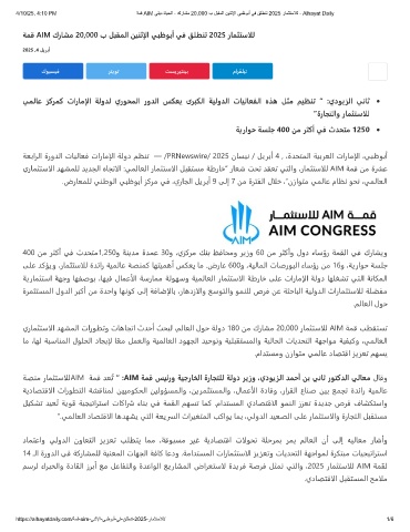 4/10/25, 4:10 PM ﺔﻣﻗ AIM ﻲﻠﯾد ةﺎﯾﺣﻟا - كرﺎﺷﻣ 20,000 ب لﺑﻘﻣﻟا نﯾﻧﺛﻹا ﻲﺑظوﺑأ ﻲﻓ ﻖﻠطﻧﺗ 2025 رﺎﻣﺛﺗﺳﻼﻟ - Alhayat Daily