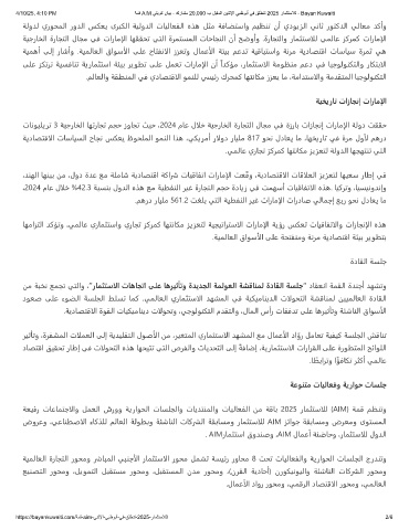 ﺎﻬﻣاﺰﺘﻟا ﺪﻛﺆﺗو ،ﻲﻤﻟﺎﻋ يرﺎﻤﺜﺘﺳاو يرﺎﺠﺗ ﺰﻛﺮﻤﻛ ﺎﻬﺘﻧﺎﻜﻣ ﺰﻳﺰﻌﺘﻟ ﺔﻴﺠﻴﺗاﺮﺘﺳالا تارﺎﻣإلا ﺔﻳؤر ﺲﻜﻌﺗ تﺎﻴﻗﺎﻔﺗالاو تازﺎﺠﻧإلا هﺬﻫ