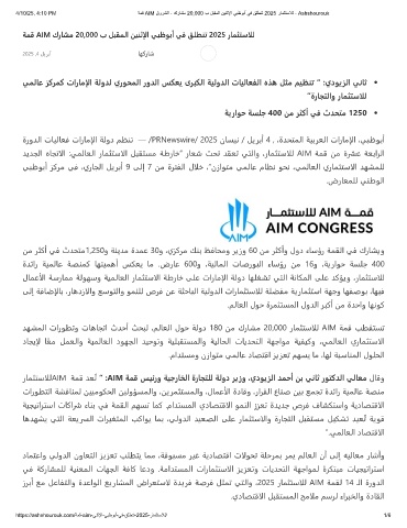 4/10/25, 4:10 PM ﺔﻣﻗ AIM قورﺷﻟا - كرﺎﺷﻣ 20,000 ب لﺑﻘﻣﻟا نﯾﻧﺛﻹا ﻲﺑظوﺑأ ﻲﻓ ﻖﻠطﻧﺗ 2025 رﺎﻣﺛﺗﺳﻼﻟ - Ashshourouk
