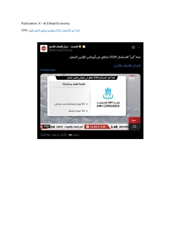 Publication: X – Al Etihad Economy Link: لبقلما نينثلإا يبظوبأ يف قلطنت 2025 رامثتسلال "ميا" ةمق