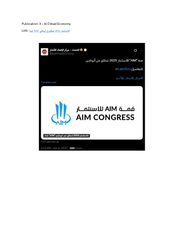 Publication: X – Al Etihad Economy Link: ةمق "AIM" يبظوبأ يف قلطنت 2025 رامثتسلال