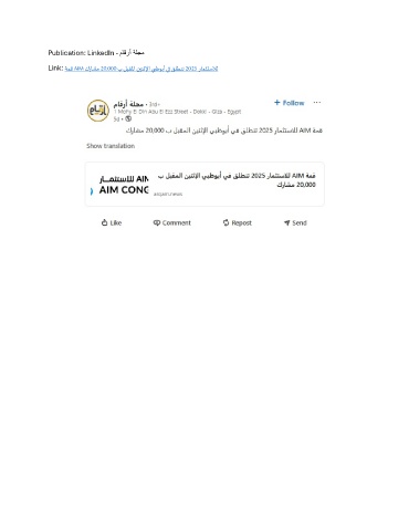 Publication: LinkedIn - ماقرأ ةلجم Link: ةمق AIM كراشم 20,000 ب لبقلما نينثلإا يبظوبأ يف قلطنت 2025 رامثتسلال