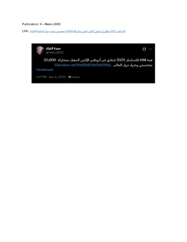 Publication: X – Nebo 2003 Link: ةمقAIMملاعلا لوح ءاربخو صصختم 20,000 ةكراشمب لبقلما نينثلإا يبظوبأ يف قلطنت 2025 رامثتسلال